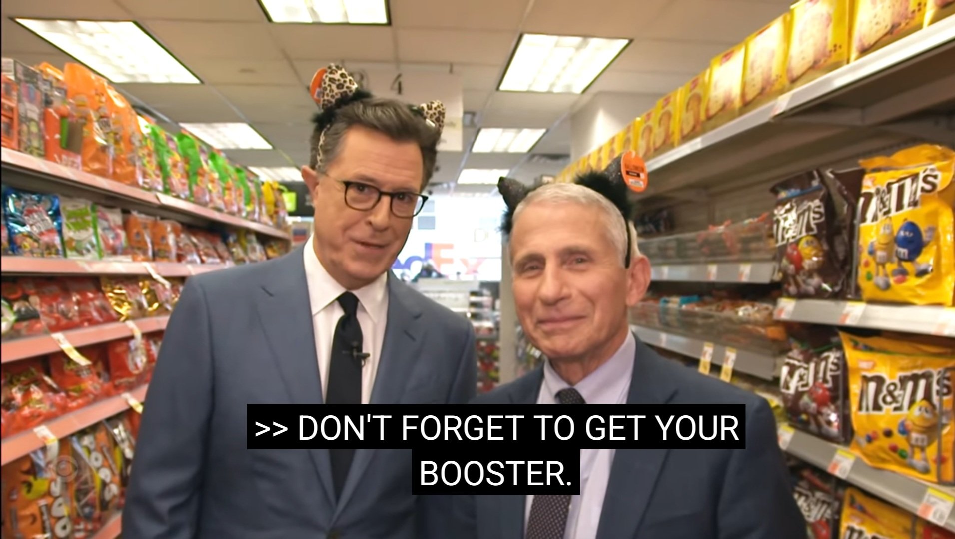 The self-proclaimed embodiment of science joined Stephen Colbert’s ‘The Late Show’ on Thursday to dutifully peddle some more propaganda about the failed and dangerous Covid booster shots.