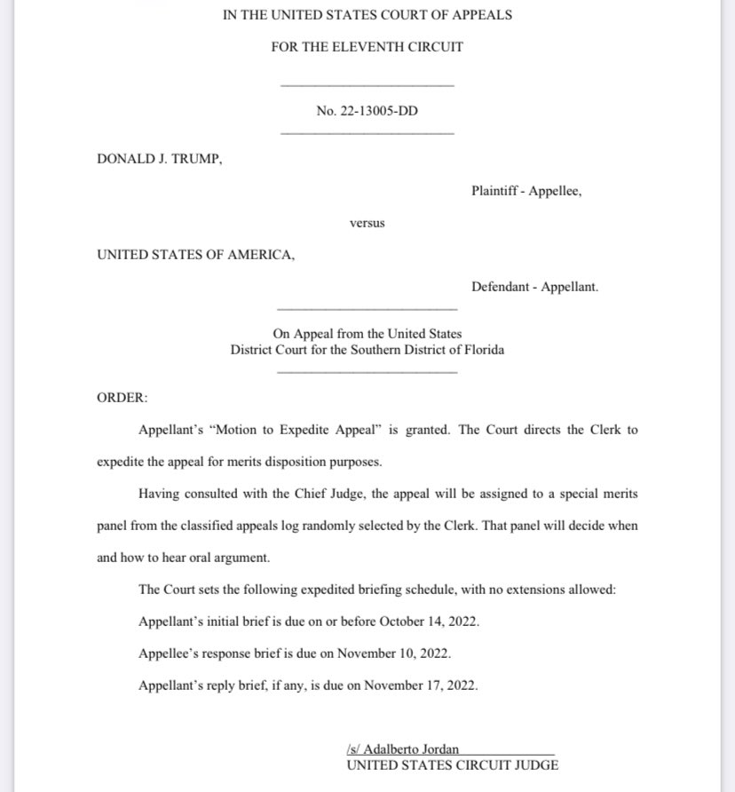 JUST IN: Appeals Court Grants DOJ Motion to Fast-Track Appeal of Judge Cannon’s Order Appointing Special Master to Oversee Seized Documents