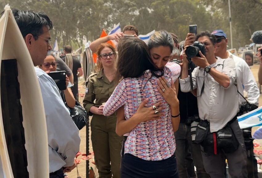 Nikki Haley hugging survivor Tali Biner after touring the Nova massacre site. (Photo: Kassy Akiva/The Daily Wire)