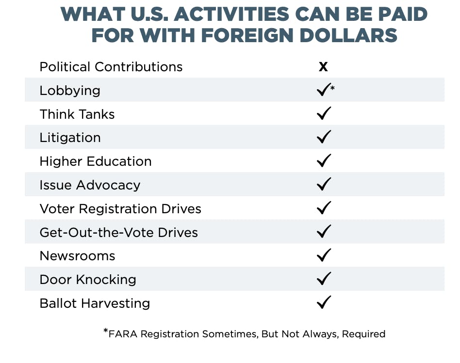 “It doesn’t just stop at ballot issues, but it goes a little bit further because everywhere we look, we see that foreign nationals are bankrolling these advocacy campaigns and policy fights in the United States,” she said. “They can give, and they can influence these whole host of other electoral tools that really matter up to and including on election day, like voter education drives, [get-out-the vote] campaigns, ballot issues.”