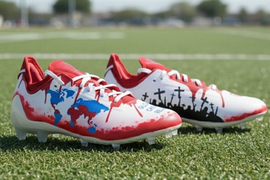 Once a year, players can choose any charitable cause to raise awareness and money for through a unique cleat design, which the players wear for their “My Cause, My Cleats” game. The Special Olympics, cancer foundations, and youth sports initiatives are all popular picks for players. But TreVeyon Henderson, who in recent years became a Christian, chose t0 highlight the Global Christian Relief and the work they do to help the 380 million persecuted Christians around the world.