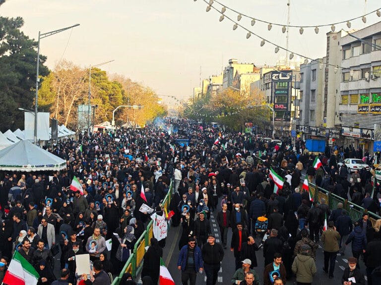 TEHRAN, IRAN – JANUARY 12: People join a pro-government rally on January 12, 2026, in Tehran, Iran. (Photo by Stringer/Getty Images)