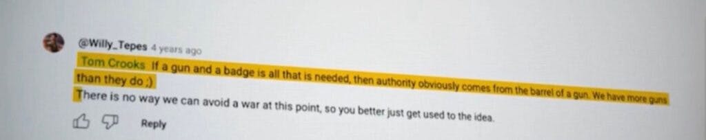 In common parlance, this is known as “fed posting.” Willy Tepes is almost being too obvious about it. He understands that Thomas Crooks is a radical who’s prone to violence. He sees that Crooks is posting about acts of violence against political officials — and that Crooks wrote, at one point, that even the White House could be overwhelmed if enough Americans took up arms. Willy Tepes is aware of all this. And instead of expressing concern, he encourages Crooks to go to war.