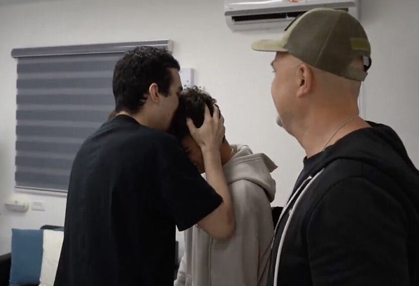 Edan Alexander reuniting with his family (Photo by Israeli Defense Forces / IDF/Anadolu via Getty Images)
