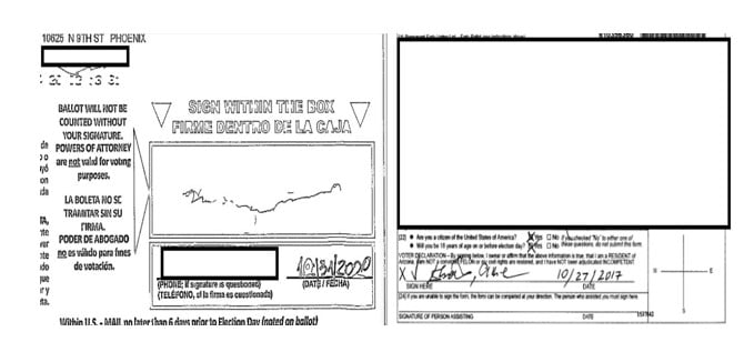 Here is an example of a certified signature on an Arizona mail-in ballot from the filing.