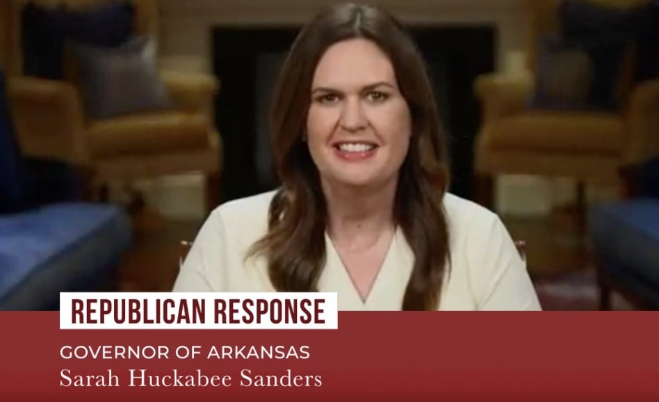 Governor Sarah Huckabee Sanders delivered the Republican Party State of the Union Response on Tuesday night to Joe Biden’s SOTU Address.