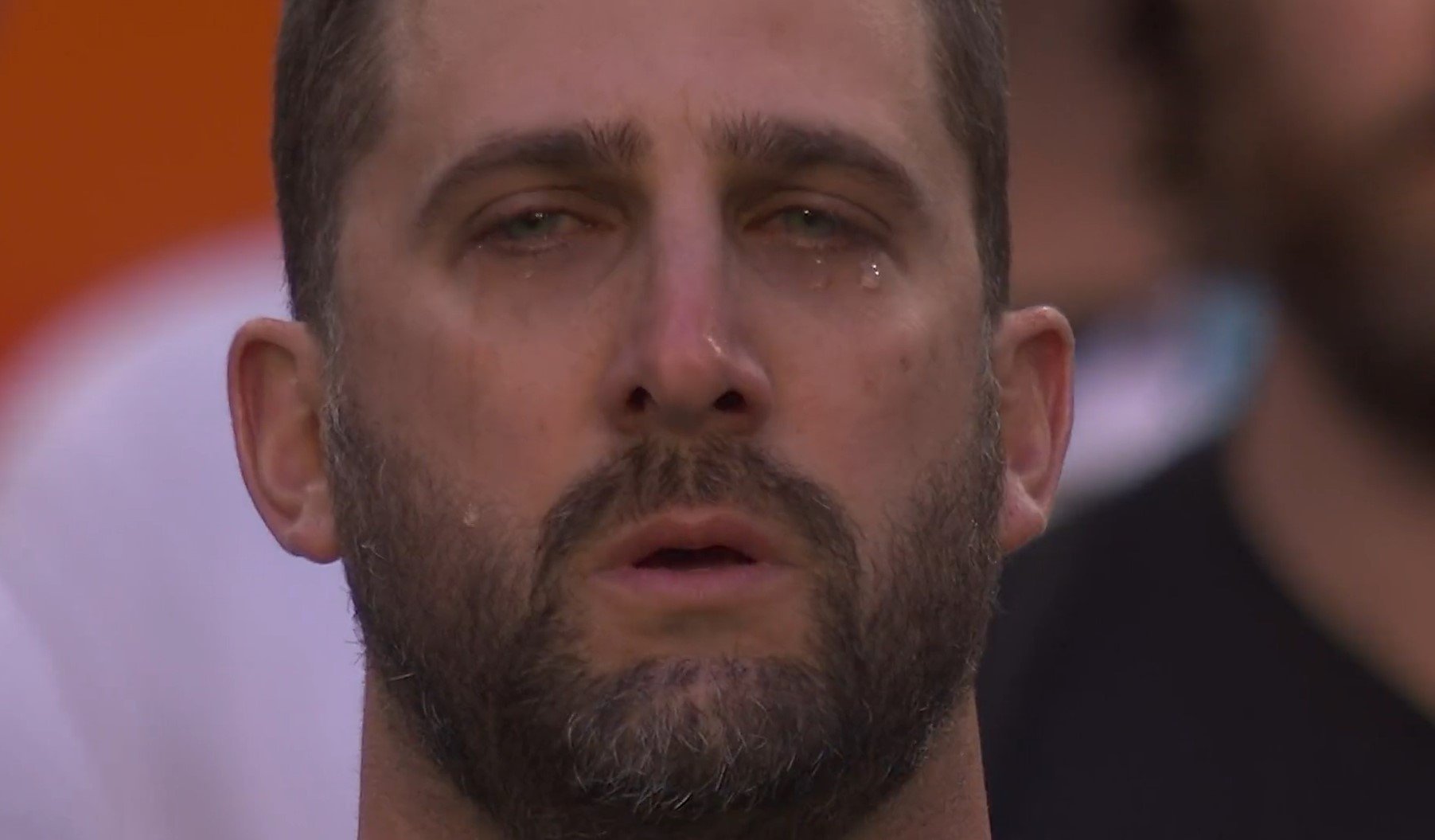 Chris Stapleton brought Nick Sirianni to tears.#SuperBowl #NationalAnthem