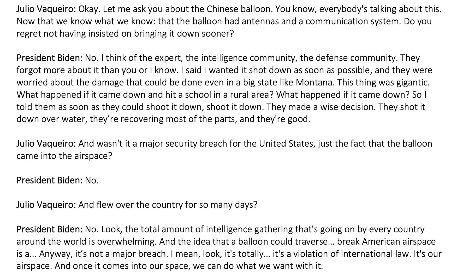 Julio Vaqueiro: And wasn't it a major security breach for the United States, just the fact that the balloon came into the airspace?