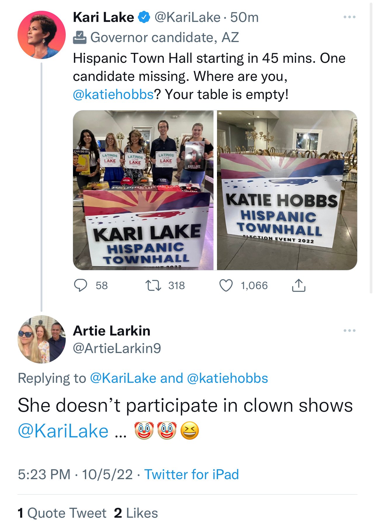 The post WATCH LIVE: Kari Lake And Katie Hobbs Invited To Speak At Hispanic Town Hall Event – Racist Democrat Katie Hobbs Is MIA appeared first on The Gateway Pundit.