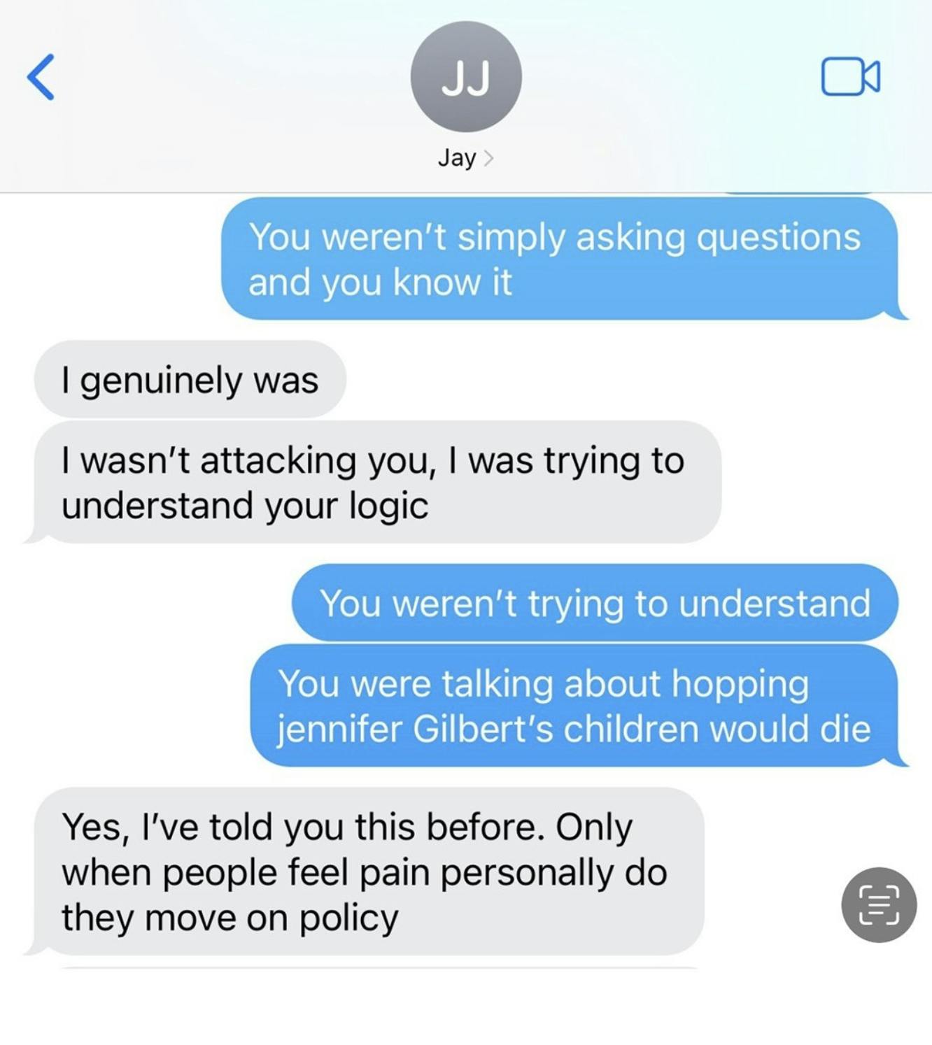He hoped for the death of Gilbert’s children as a way of impacting the state’s politics, saying, “Only when people feel pain personally do they move on policy.”